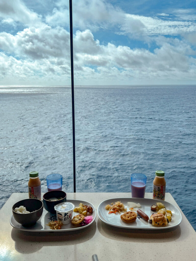 船の内装が海外仕様なのはもちろん、クルー・乗船客の方々も海外の方がほとんど(乗客に関しては時期によるのかもしれません)。寄港地に到着すると日本を感じ、船に戻ると海外気分という、なんとも不思議で初めての旅体験でした*