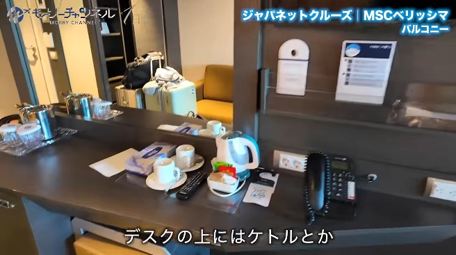 船内には「ジャパネット・デスク」が設置されていて、困ったことや不明点があれば気軽に相談できます。初めてのクルーズで不安があっても、日本語でサポートしてくれるので安心です。