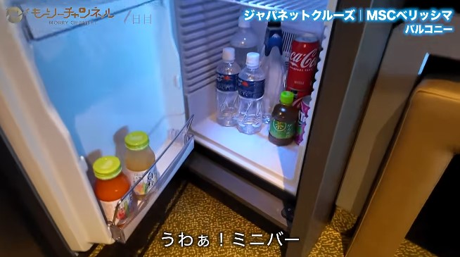冷蔵庫には水やソフトドリンクがぎっしり詰まっていて、なんとこれらはすべて無料! 飲みきっても補充してくれます。