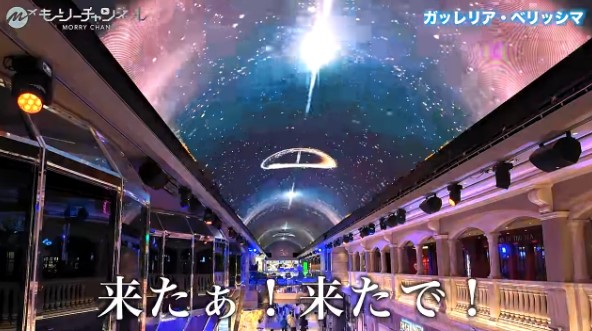MSCベリッシマのガレリア・ベリッシマは、船内中央に位置するプロムナードで、天井全体が巨大なLEDスクリーンです。