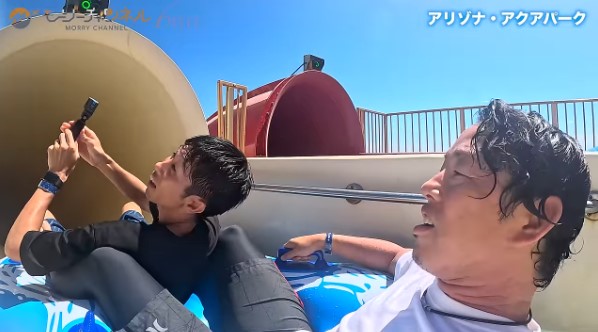 ウォータースライダーに挑戦!「レッツゴー!」と思わず声が出て、自然と笑顔に。何度でも滑りたくなりますね。