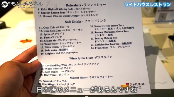 夕食はコースになっています。ジャパネットクルーズには、わかりやすく日本語のメニューがあります。ありがたいです。