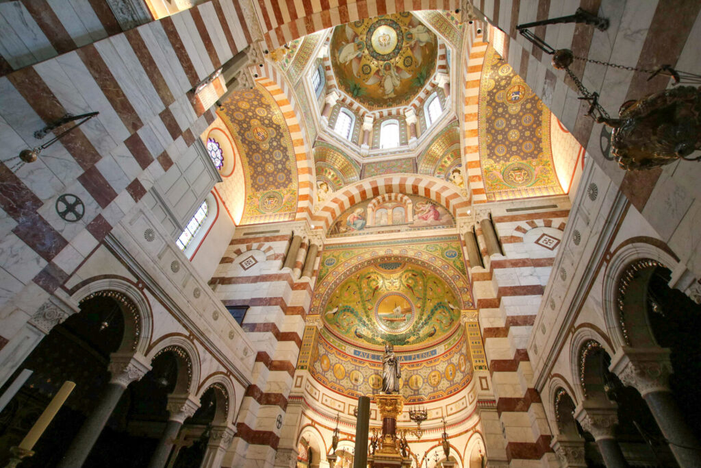 フランス・マルセイユの丘にそびえ、街を見守る守護神のような存在のノートル・ダム・ド・ラ・ギャルド・バジリカ聖堂。