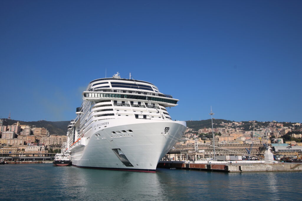 日の出時間が6:54だったことから、朝日と港を楽しみながらイタリア・ジェノバの港に到着!