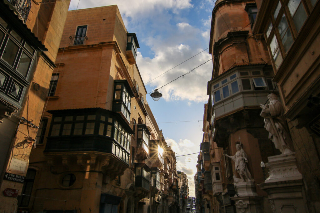 街には、淡いベージュカラーのマルタストーン(特産石灰岩)で造られた建物がひしめき合い、カラフルな出窓がアクセントにもなっています。