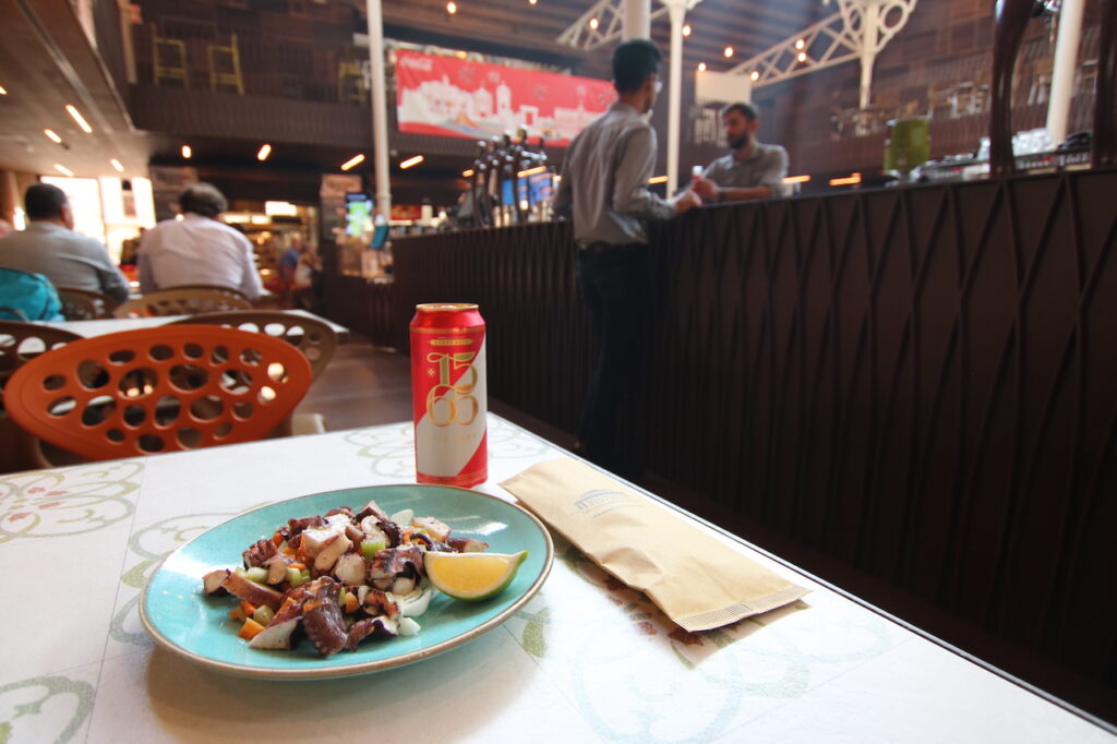 食材スーパーを併設していた、マルタの缶ビールを購入し、名物のタコ料理とともにいただきました。