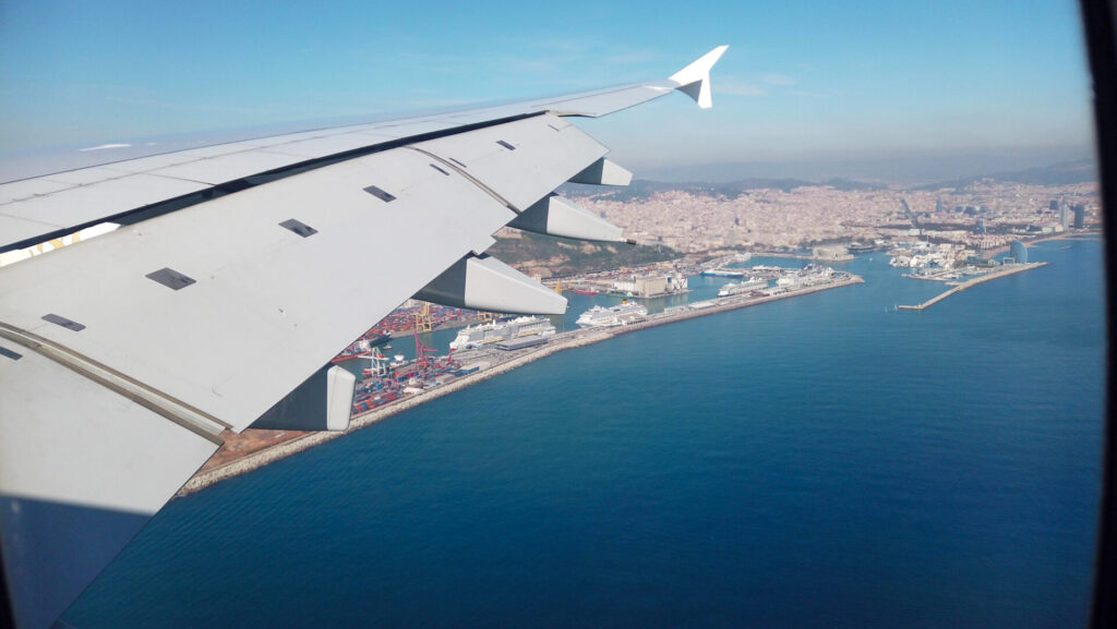 バルセロナ着陸直前には、飛行機の窓からクルーズ船ターミナルも発見。