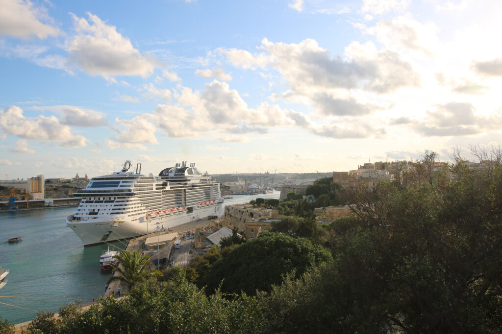 ▼MSCベリッシマ 2019年秋 地中海クルーズ(マルタ共和国・バレッタに寄港中、高台より撮影)