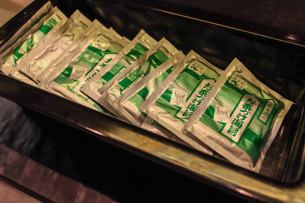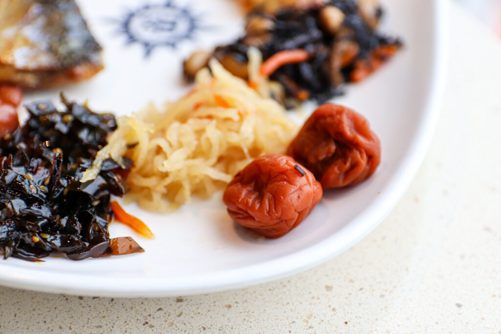 お惣菜のような複数の和食に加えて、わかめや豆腐、ネギをお好みで加えるみそ汁、梅干しがあり、特に納豆やお茶漬けの素などは人気のようです。