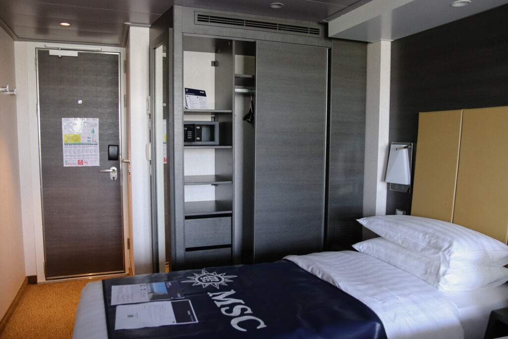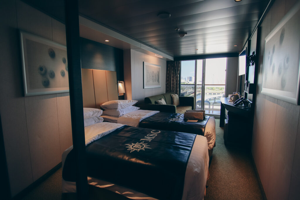 私が、5泊6日の九州・韓国ショートクルーズで宿泊していたのは、部屋の広さが約12-17㎡+バルコニー約4㎡の海側バルコニー客室タイプ。12デッキの船尾左舷・ポートサイド側にある【客室番号:12231】で、「MSCベリッシマ」の全客室数2217室のなかでも、一番多い客室タイプです。