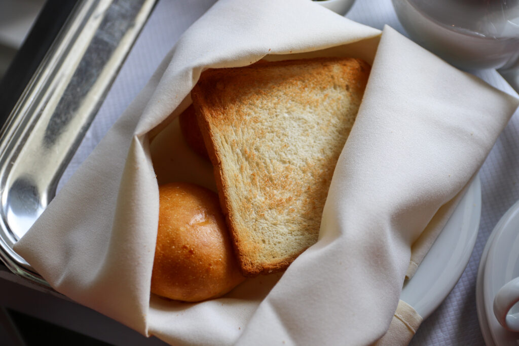 パン、飲み物、ヨーグルト、ジャム、はちみつなどのシンプルなものだけですが、朝ご飯を客室まで届けてくれるのは本当に便利! 布に包まれているトーストはどうしても冷めてはいるものの、ホットミルクやコーヒーは温かいものが届きます。