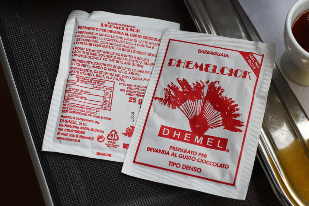 その中でもホットチョコレートが気になりオーダーしたら、パウダー状の粉末タイプ(イタリア・ジェノバの「DHEMEL」というメーカーのもの)で興味津々。私には甘めなので1杯あたり半量で使いましたが、結構気に入ったので毎日オーダーしました。