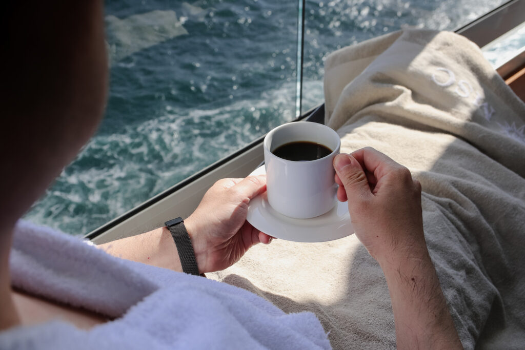 私は夫と一緒に、バルコニーで過ごす時間も好きなので、大海原を眺めながらコーヒーを飲み、次の寄港地を目指すまでの移りゆく景色を楽しむだけでも幸せな気持ちに!