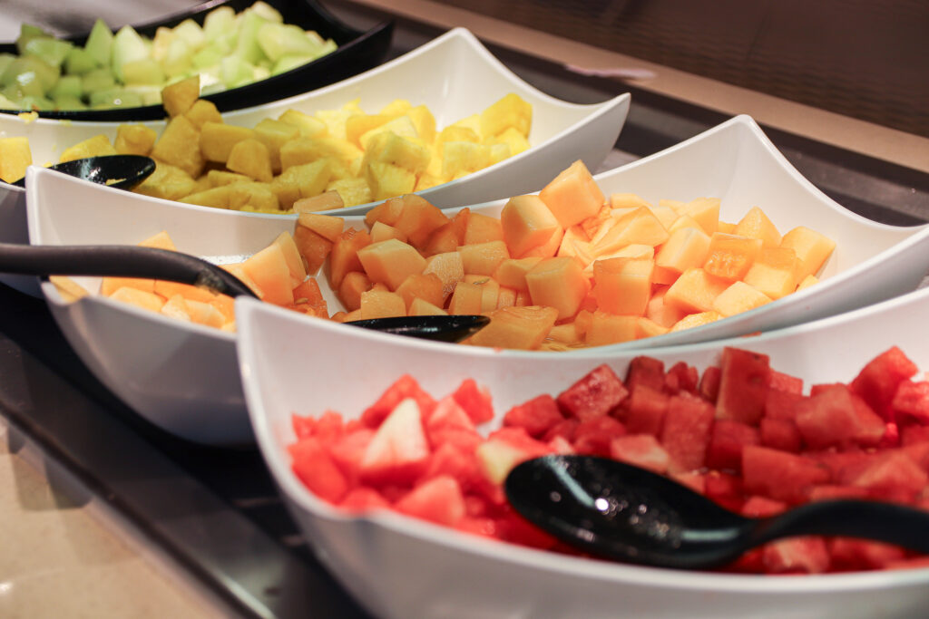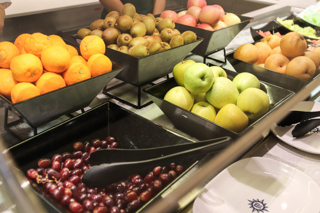 「客室での朝ご飯タイムにフルーツも欲しいな」なんて時には、デッキ15後方「マーケットプレイス・ビュッフェ」のフルーツを予めキャビンに持ってきておくのも◎