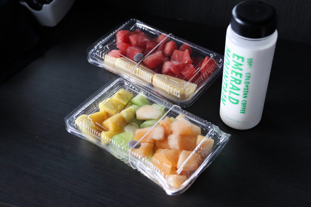 シーズンによって多少の違いはあるはずですが、私が乗船した5月の場合、スイカ、メロン、カンタロープ(赤肉メロン)、パイナップル、りんご、梨、オレンジ、キウイフルーツ、ブドウなどがありました。