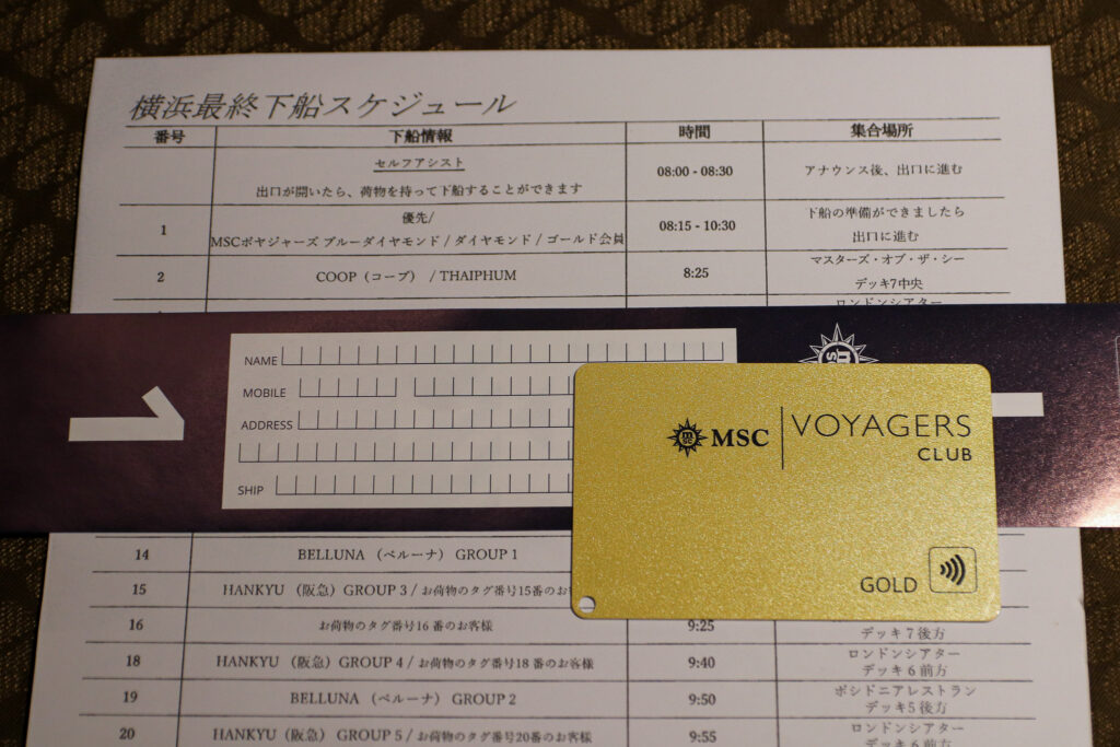 というのも、最終下船スケジュール表をよく見てみたところ、MSCボヤジャーズクラブのゴールド会員は、08:15~10:30 【No.1】の優先下船の対象者だったから。