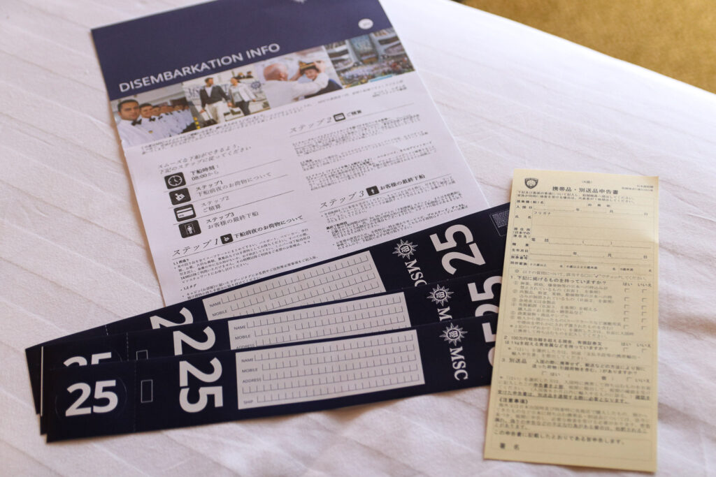 私のタグナンバーは当初、一番遅い下船時間10:30【No.25】が配られていました。ですが、実はフロントデスクに伝えて【No.1】にチェンジして貰ってます。