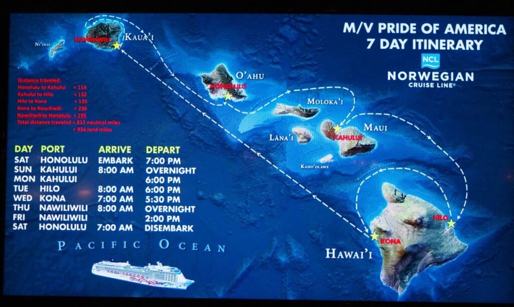 毎週土曜日に定期運航しているので、日本からだと移動含めて9日間(=1週間のお休み)あればハワイ周遊クルーズを楽しむことができます。