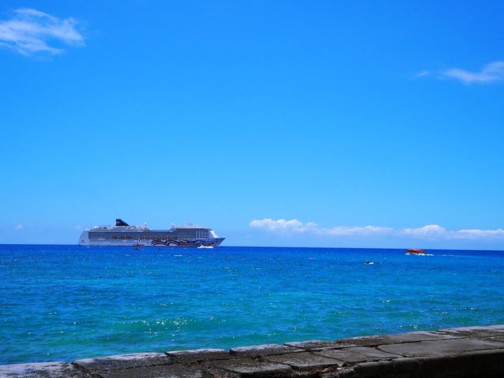 今回のハワイ周遊クルーズではこのカフルイが一番きれいに船の写真を撮ることができました。