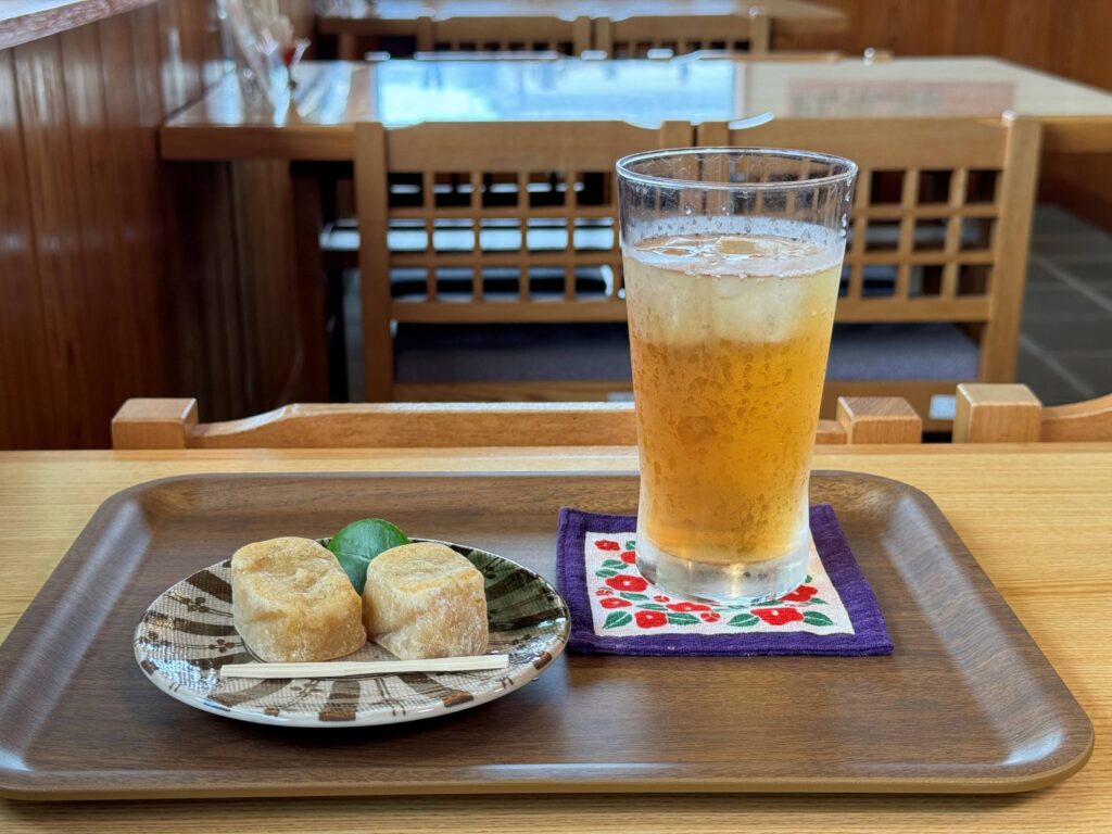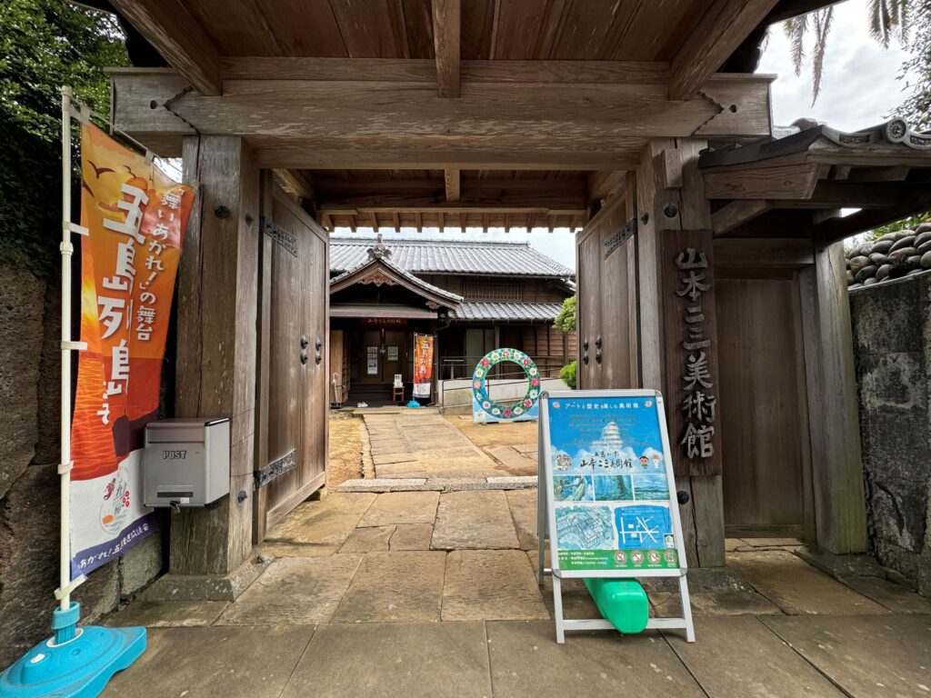 福江武家屋敷通りふるさと館では衣装体験(有料)や、カフェで五島列島の名物椿茶とかんころ餅を楽しめます。背景美術の第一人者・山本二三氏の美術館では、アニメーションの原風景としての五島を楽しむことができるアニメ好きにはたまらないスポットでした。