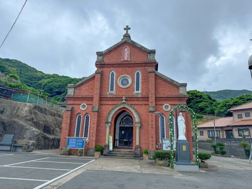 海辺に立つ赤煉瓦の教会。祈りの歴史を伝える資料が充実し、短い滞在でも“五島の時間”にそっと触れられます。