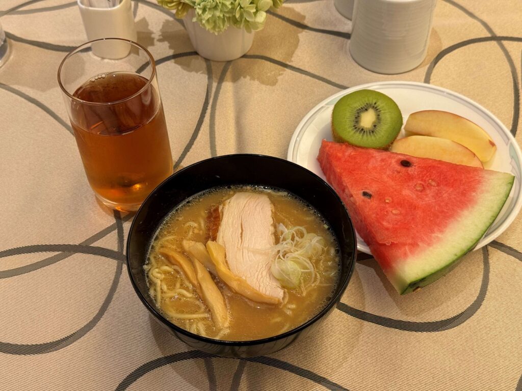 そして、22:30からの夜食。日替わりメニューが楽しめて甘いフルーツに、ときには味噌ラーメンまであり、寝る直前まで充実した1日でした。