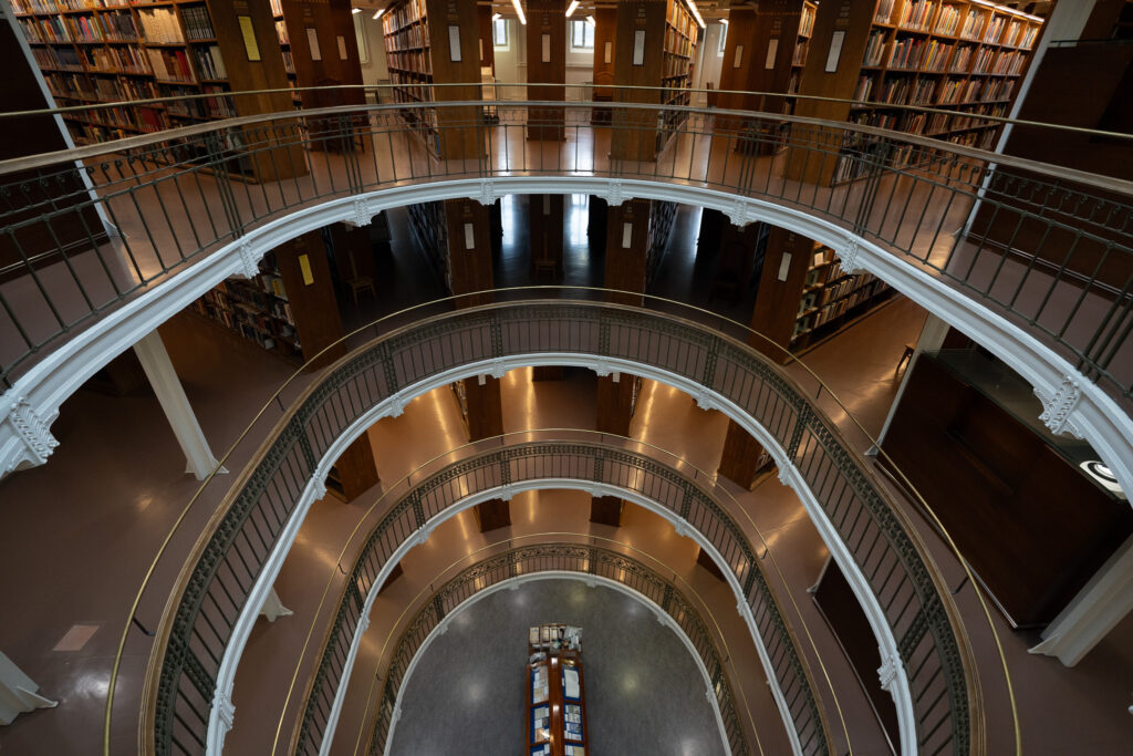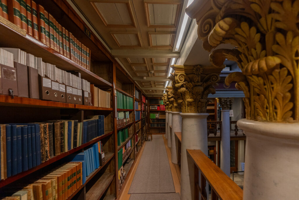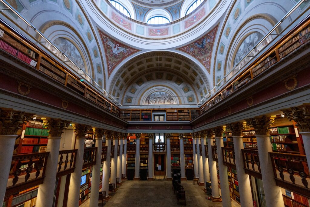 新古典主義様式の内装。ここは日本に行く時から絶対に行くと決めていた図書館です。日本では見ることがないテイストの図書館建築で見る価値があります。なんとこの図書館は1840年に設立されたもの。歴史のある建物を継続して利用し続ける精神もいいですね。
