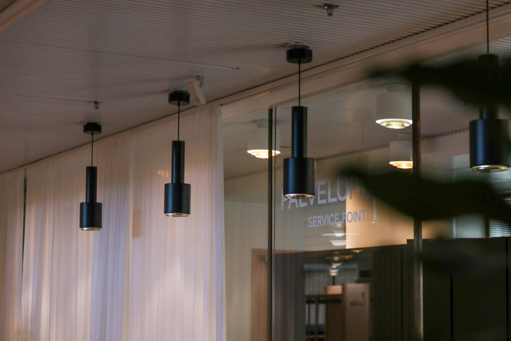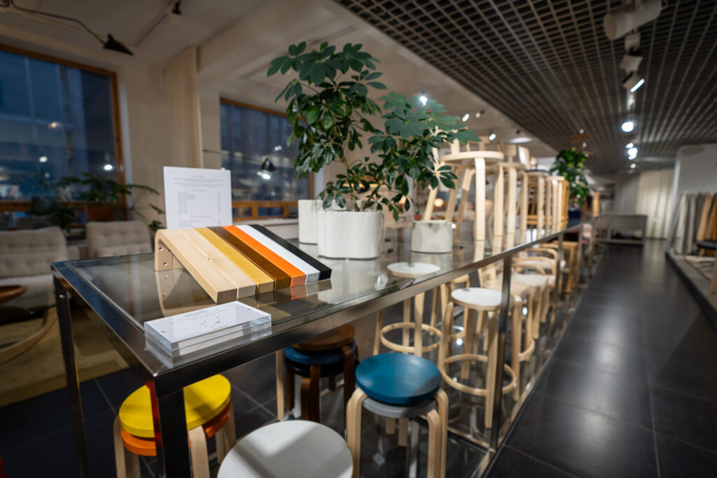 前日にアアルトスタジオで説明を受けたマテリアルが、実際に空間で使われている様子を見ることができました。