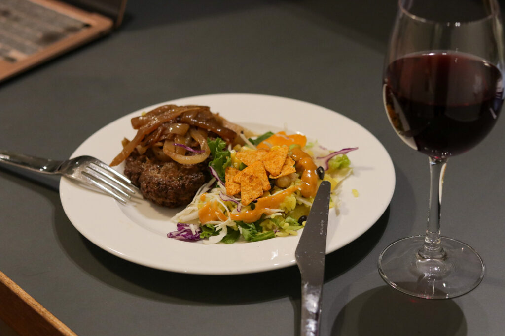 ヘルシンキで過ごす最後の夜。荷物の整理もあるのでお部屋で夕飯を食べることにし、ハンバーグとサラダをセレクト。ちなみに食べ物の物価は日本の1.5倍くらいの感覚。一品がたっぷりな量で満足感があり、「北欧は物価が高い」という印象は持ちませんでしたよ。