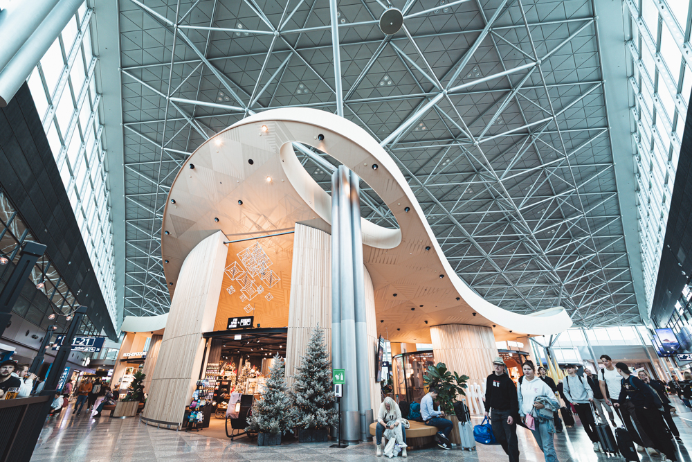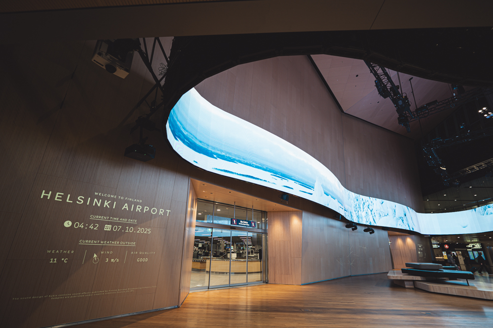 早朝にヘルシンキ・ヴァンター国際空港へ到着。北欧らしい木の温もりに包まれた、シンプルで美しい空港です。