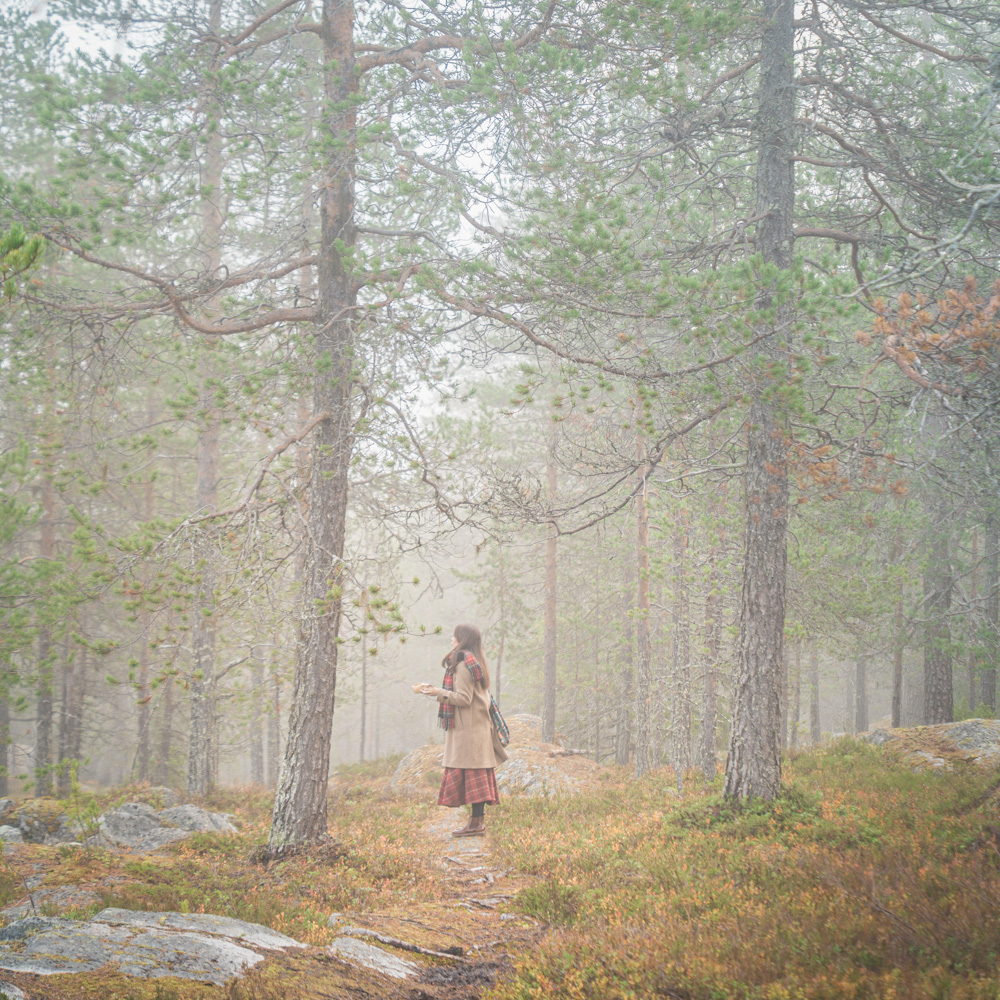 深い霧に包まれたフィンランドの森は幻想的で、まるで童話の中に入り込んだかのよう。