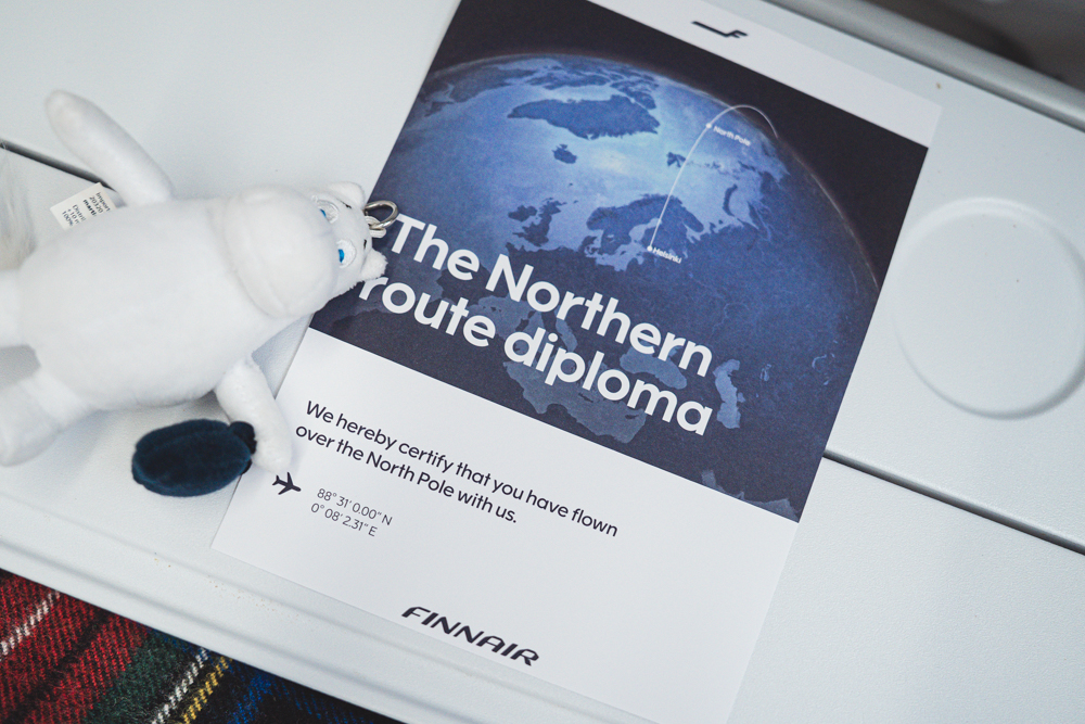 着陸準備の前には、CAの方から北極航路通過証明書をもらえました。