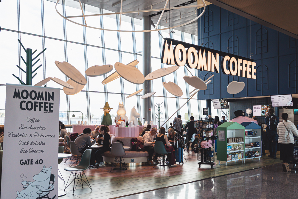 空港には、ムーミンショップにムーミンカフェ、そしてマリメッコやイッタラなどの北欧ブランドのショップが勢揃い。