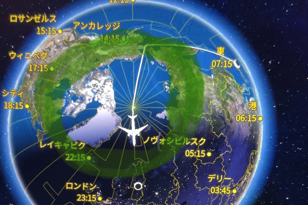 北極海の上空を通過し、夜にはオーロラが現れる、幻想的な魔法の世界を通るルートなのです。