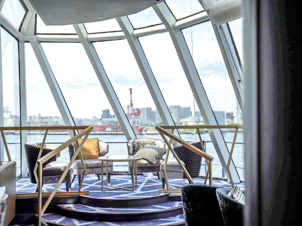 船首に位置するラウンジは360℃大パノラマビューの絶景が待ち受けています。