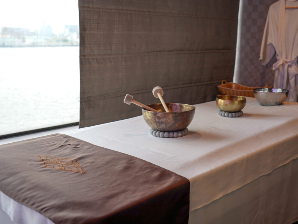 シンギングボウルも設置され極上の癒し体験が可能。
