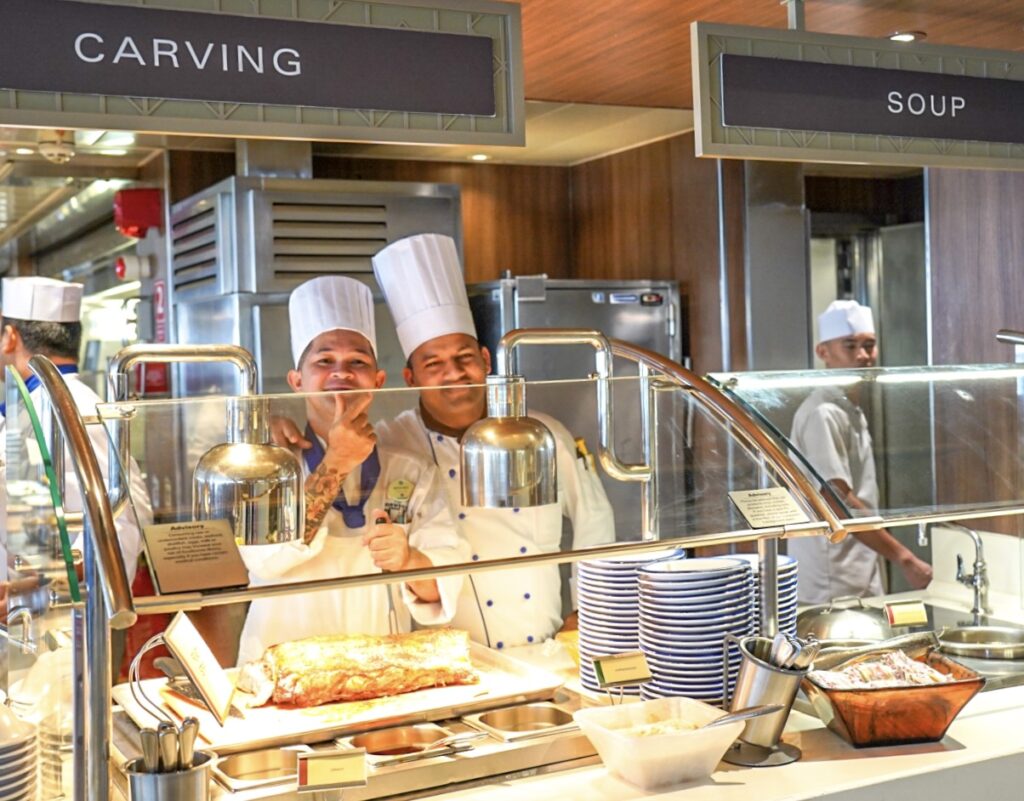 ノルウェージャンクルーズでは固定のダイニング時間に縛られず好きな時に好きなだけ食事を楽しむことができます。