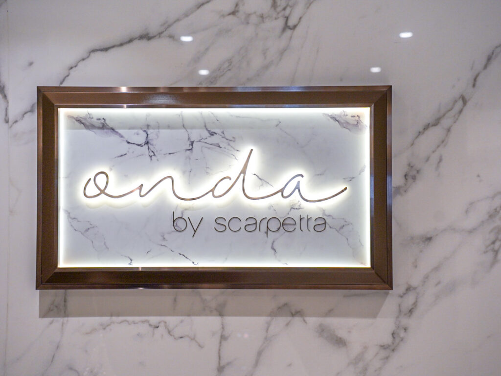 「オンダ」は、ニューヨーク、ハンプトンズ、マイアミ、ラスベガス、など中心に展開するスカルペッタ系列で洋上初のレストランです。人気のパスタからシーフードの創作料理まで、モダンなイタリア料理を堪能できます。