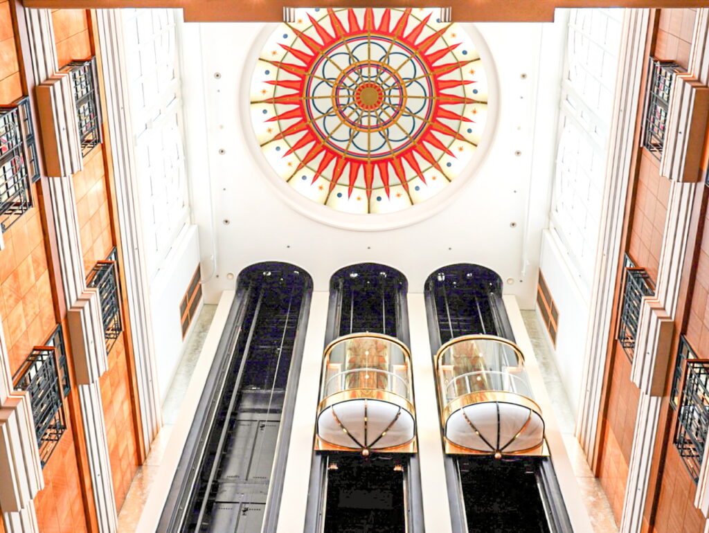 ゴールドに輝くエレベーターがとても印象的で素敵な空間が広がっていました。