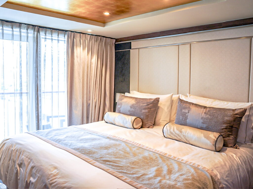 大改装を経て新しく生まれ変わったステートルームはベージュを基調とした洗練されたおしゃれなインテリア。