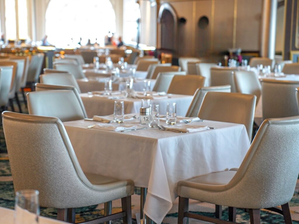 通常、クルーズ船でのダイニングでは決まった食事の時間や座席指定があることが多いです。