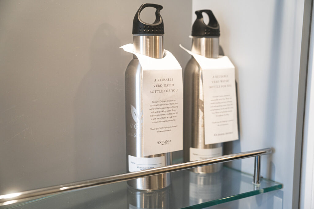 さらに持ち運び用のステンレスボトルも用意されており、船内のウォーターサーバーを無料で利用することも可能。