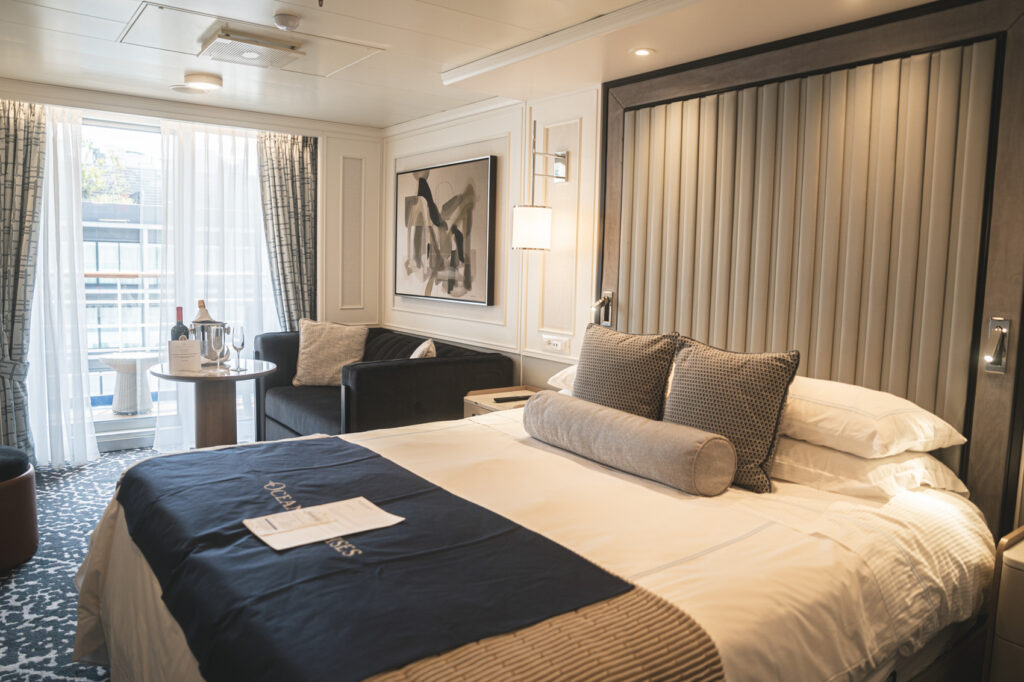 エレガントな可愛らしさのある「オーシャニア・リビエラ」の客室