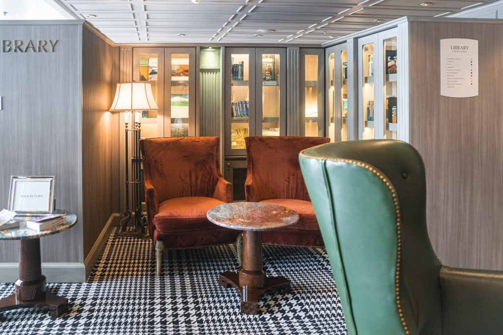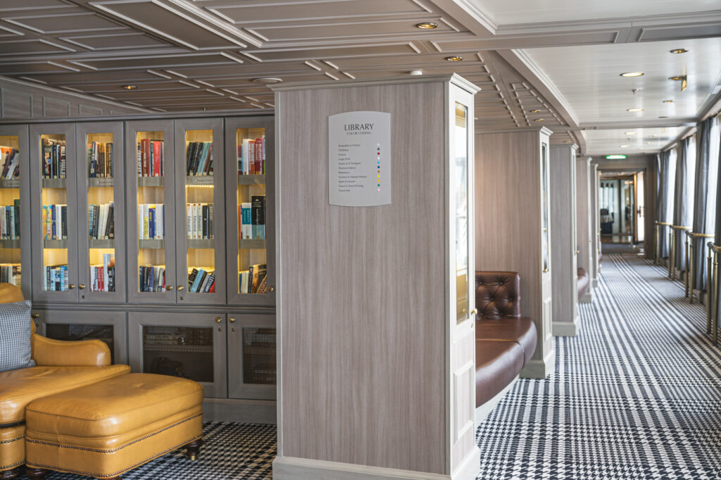 船内見学中に、思いがけず心躍ったのがライブラリーです。