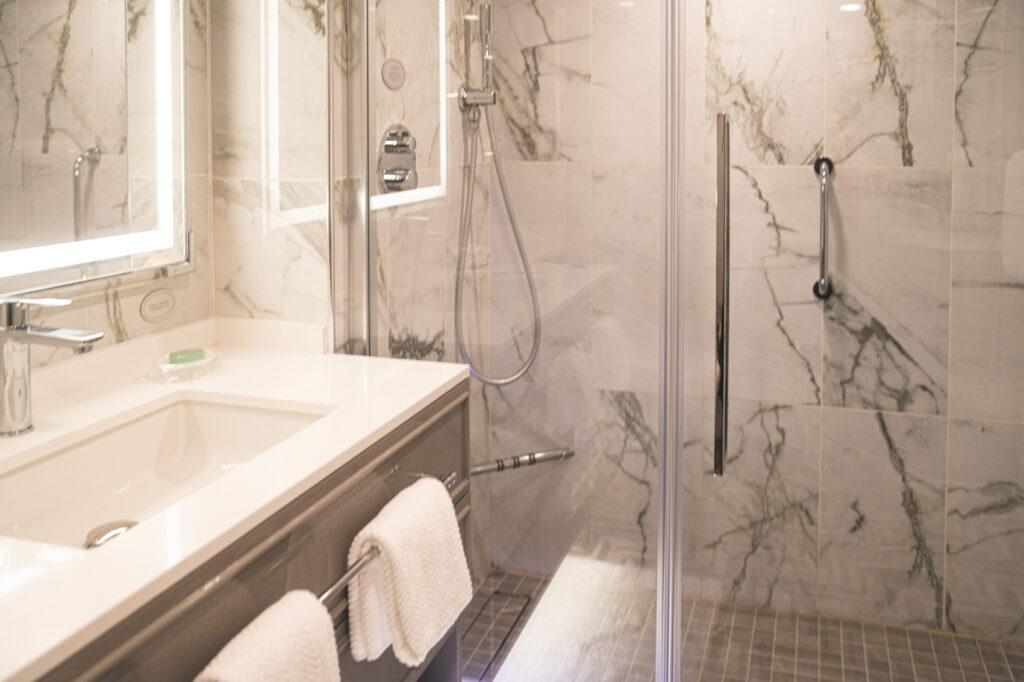 ペントハウス・スイートのバスルームも、バスタブ付きと無しのタイプがあります。