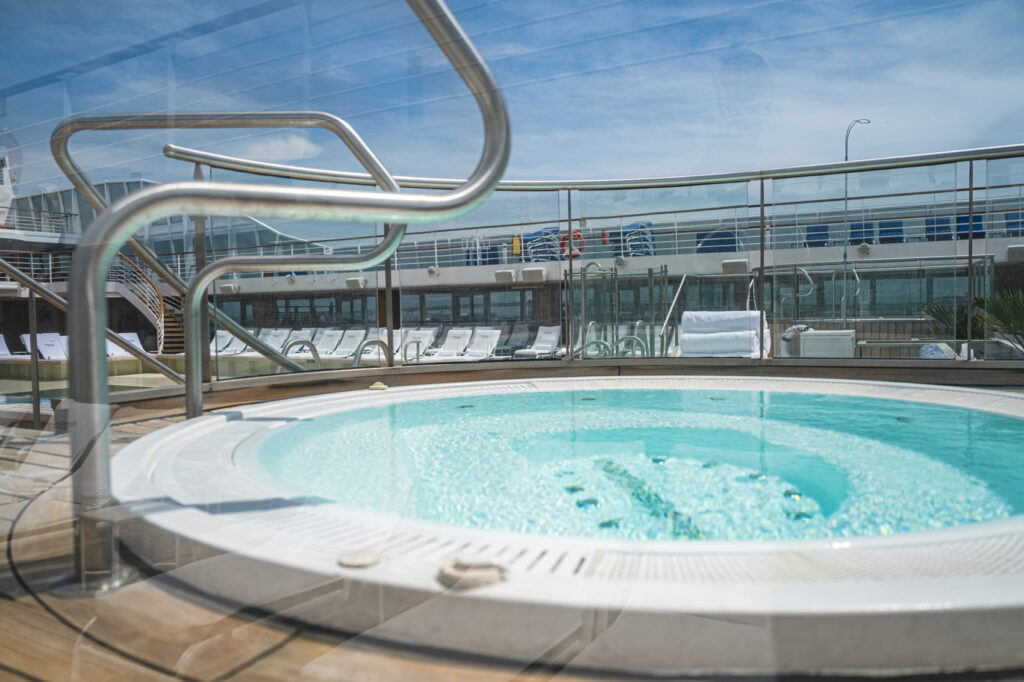 「オーシャニア・リビエラ」には、屋外に温水プールが1つあり、ジャグジーも設けられています。