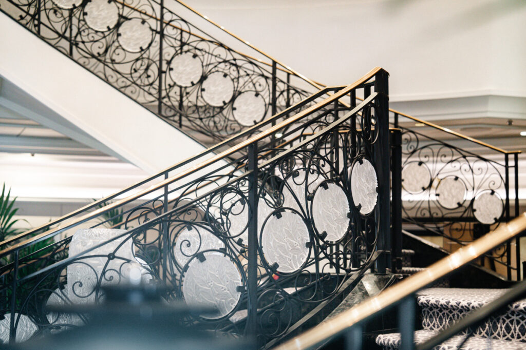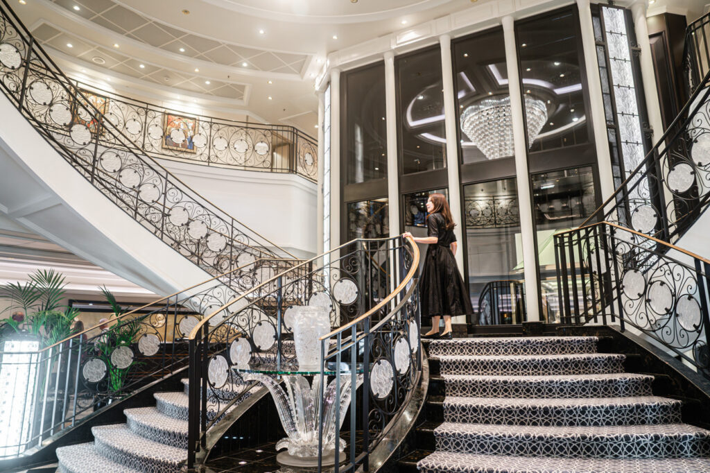 どのクルーズ船も大階段は美しいものですが、こんなにも洗練された華やかさのある大階段は見たことがありません。