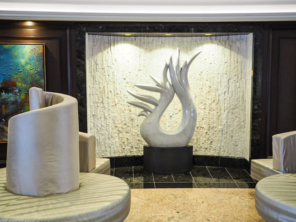 ロビーの周りや船内各所には、アート作品も数多く展示されているので、まるで美術館に来たような感覚を楽しめますよ。