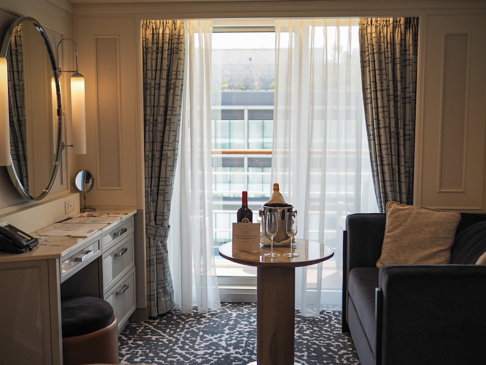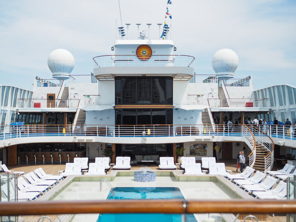 日本の飛鳥Ⅱよりもひとまわり大きいサイズで、前回私が乗ったカジュアル船ロイヤル・カリビアンのスペクトラム・オブ・ザ・シーズの約17万tの船よりもかなり小ぶりになっています。