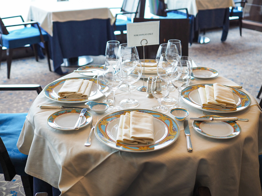 通常、クルーズ船では多くのお客様が乗船しているため、一度にレストランに入れる人数に限りがあり、乗船客を2つの時間帯に分けてダイニングでの食事をサービスするトゥー・シーティング(Two Seating)制を取っていることが多いです。